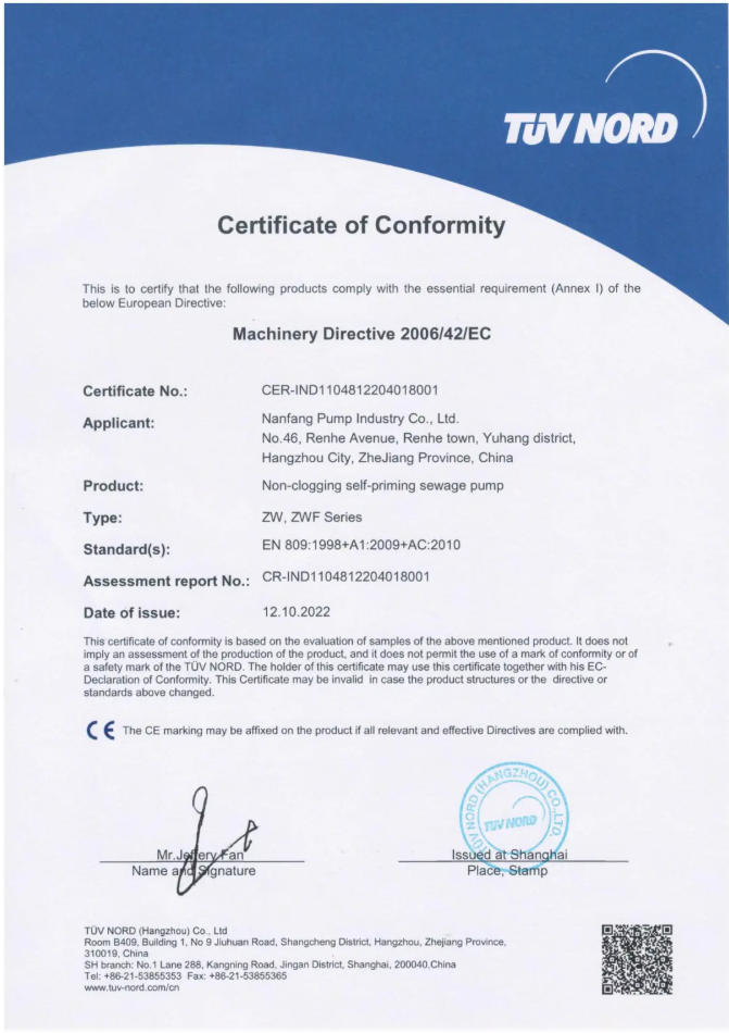 近日,南方泵業(yè)旗下南方歐科的GW(F)、NZXF、ZWL(F)、ZW(F)系列產(chǎn)品順利通過歐盟嚴(yán)格測試與審核,成功斬獲CE認(rèn)證,標(biāo)志著該系列產(chǎn)品在安全性、合規(guī)性及技術(shù)標(biāo)準(zhǔn)層面已完全符合歐盟市場準(zhǔn)入要求,為公司進(jìn)一步拓展國際市場奠定了堅(jiān)實(shí)基礎(chǔ)。
